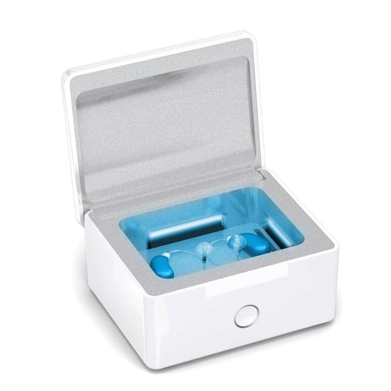 Durch die Kombination aus Belüftungstrocknung und UV-C-Licht-Desinfektion werden die Hörgeräte gereinigt und optimal gepflegt.