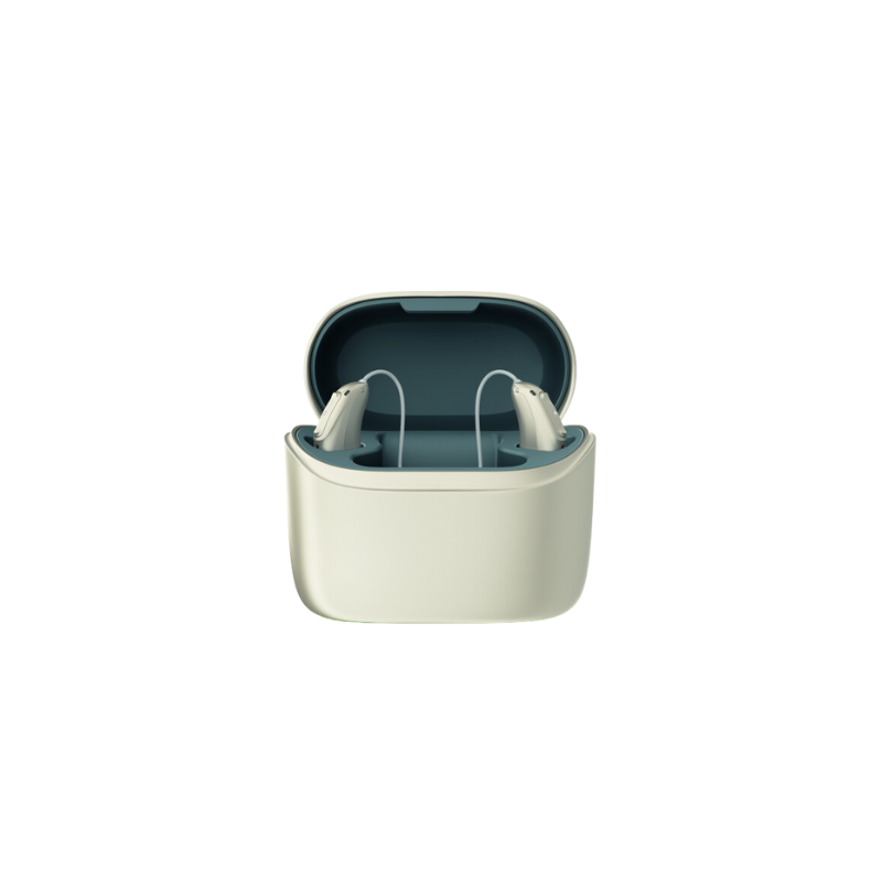 Durch induktives Laden sind Ihre Hörgeräte in nur 3 Stunden vollständig und automatisch aufgeladen. Für die Stromversorgung wird ein standardmäßiger USB-C-Anschluss verwendet.